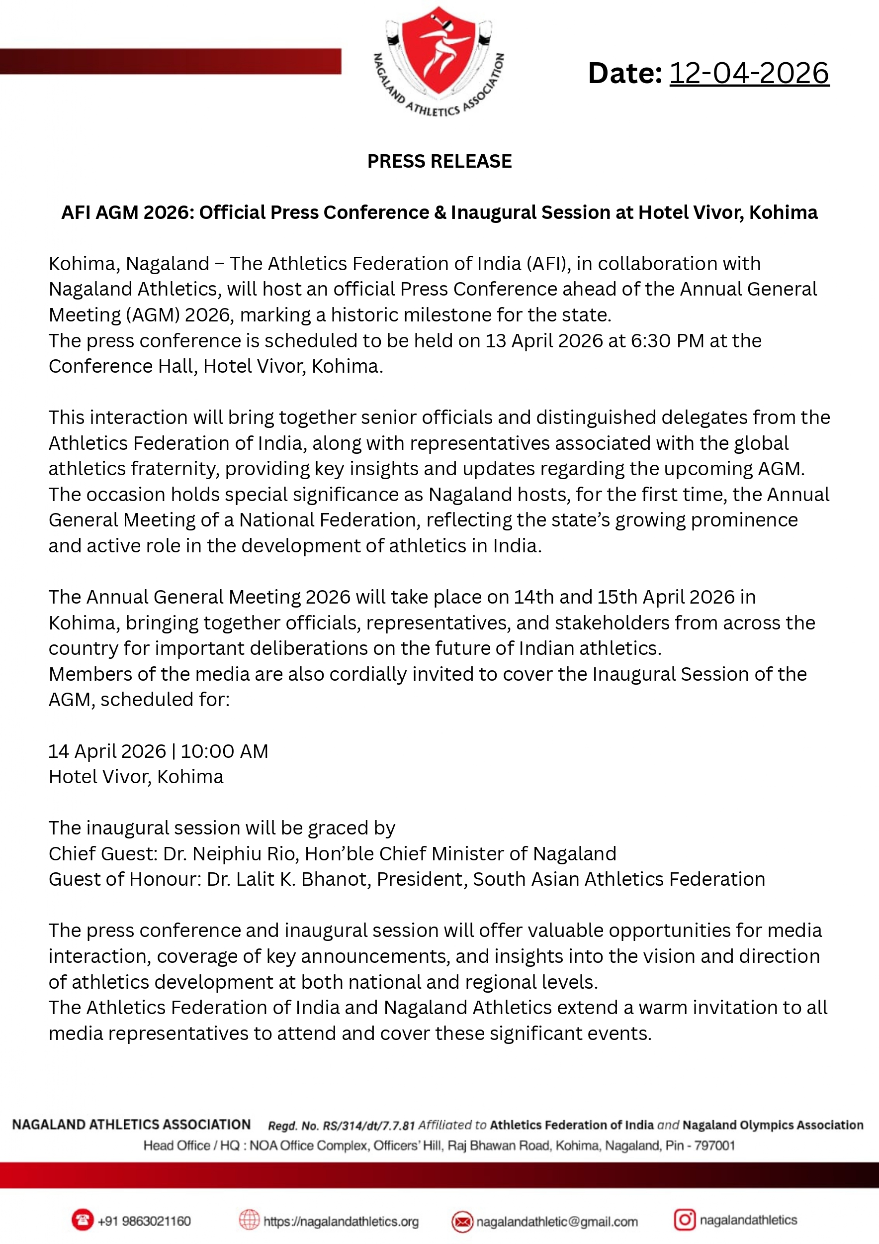 AFI AGM 2026: Official Press Conference & Inaugural Session at Hotel Vivor, Kohima April 13, 2026April 12, 2026 by noaadmin Press release AGM
